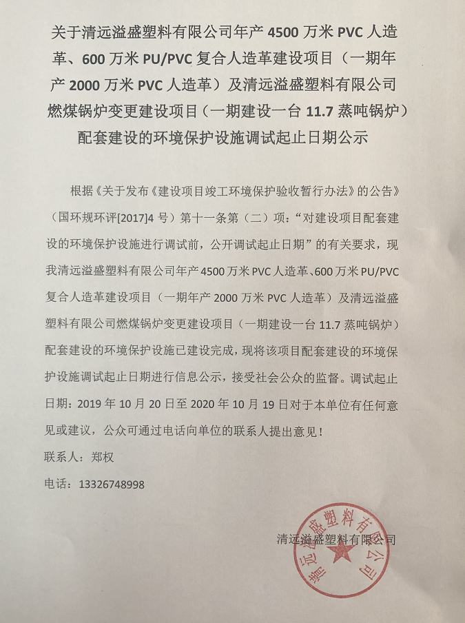 下一頁: 關(guān)于清遠溢盛塑料有限公司年產(chǎn)4500萬米PVC人造革、600萬米PU/PVC復(fù)合人造革建設(shè)...