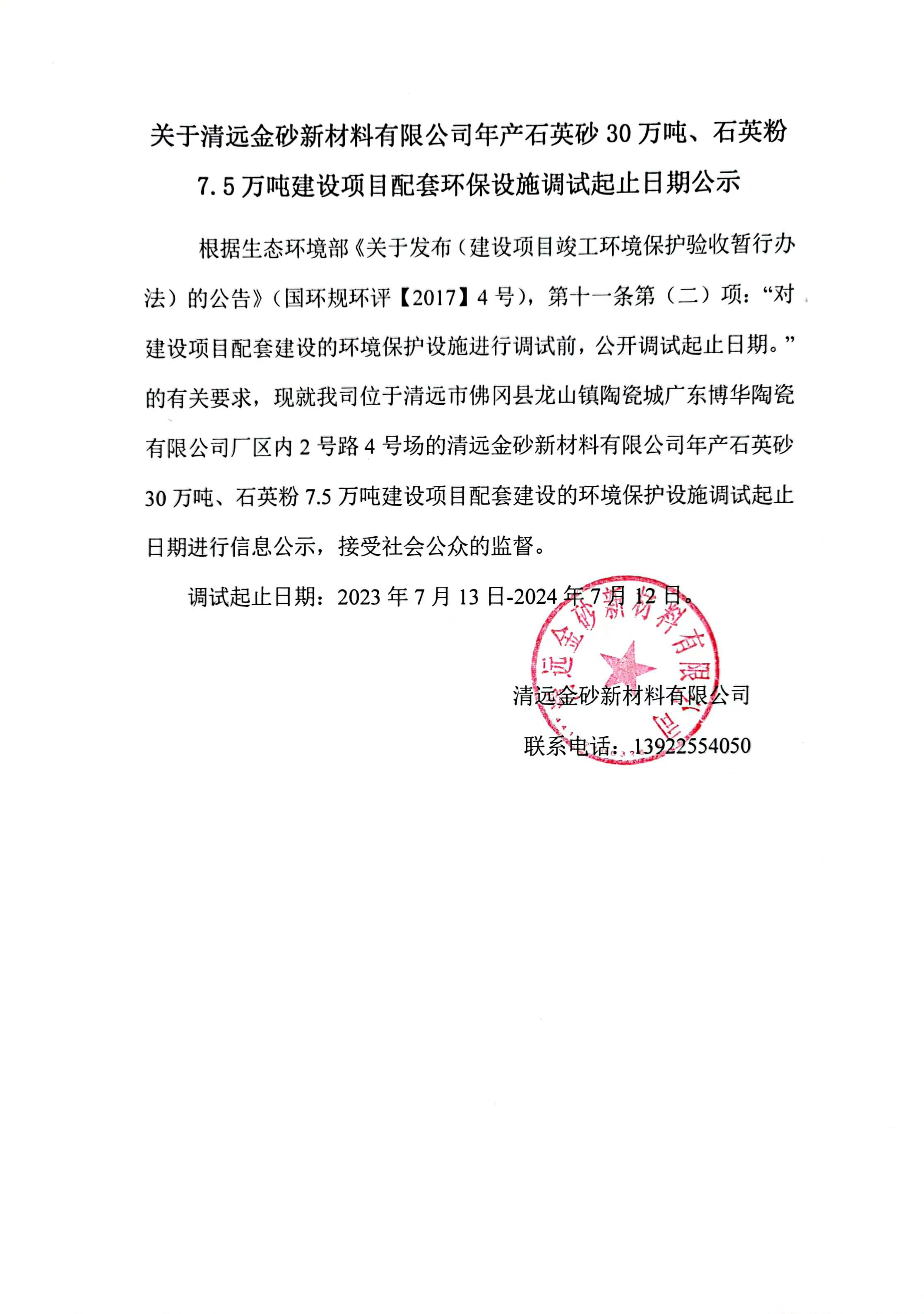 上一頁:關于《清遠金砂新材料有限公司年產石英砂30萬噸、石英粉7.5萬噸建設項目竣工...